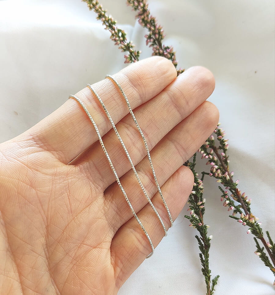 Cieńki i delikatny - idalny do wszelkiego rodzaju zawieszek, wisiorków i celebrytek. Struktura kostki sprawia, że przepięknie mieni się na dekolcie.