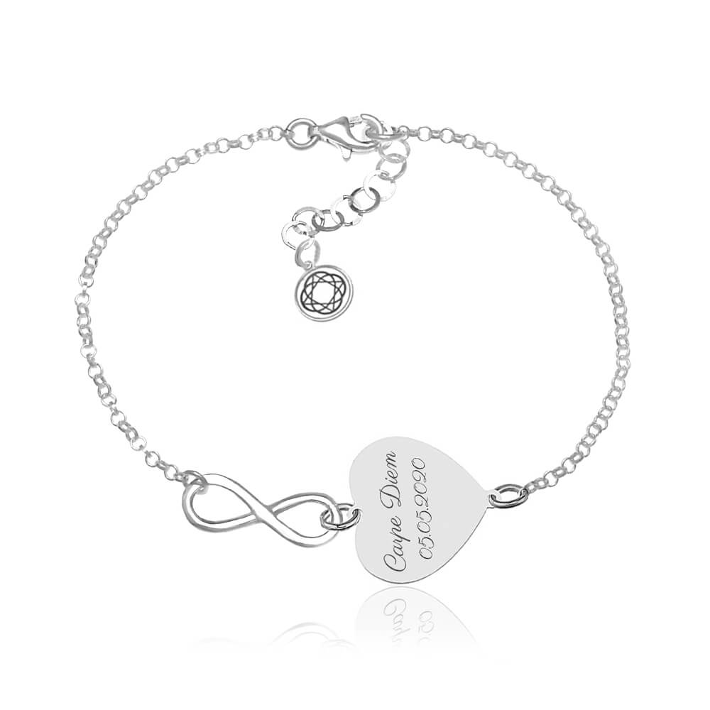 Srebrna bransoletka z serduszkiem i infinity Laura - grawer