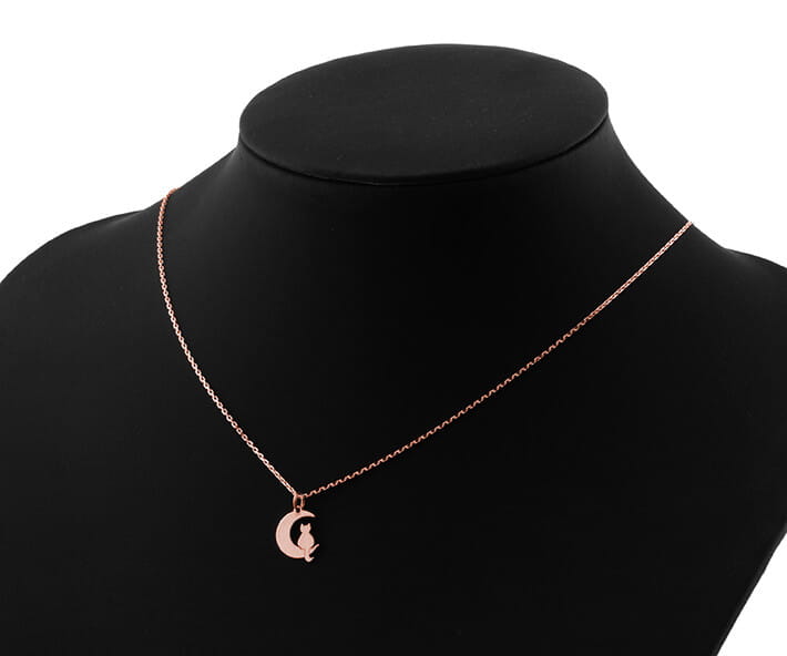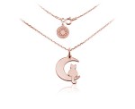Srebrny naszyjnik z kotkiem na księżycu - Rose Gold