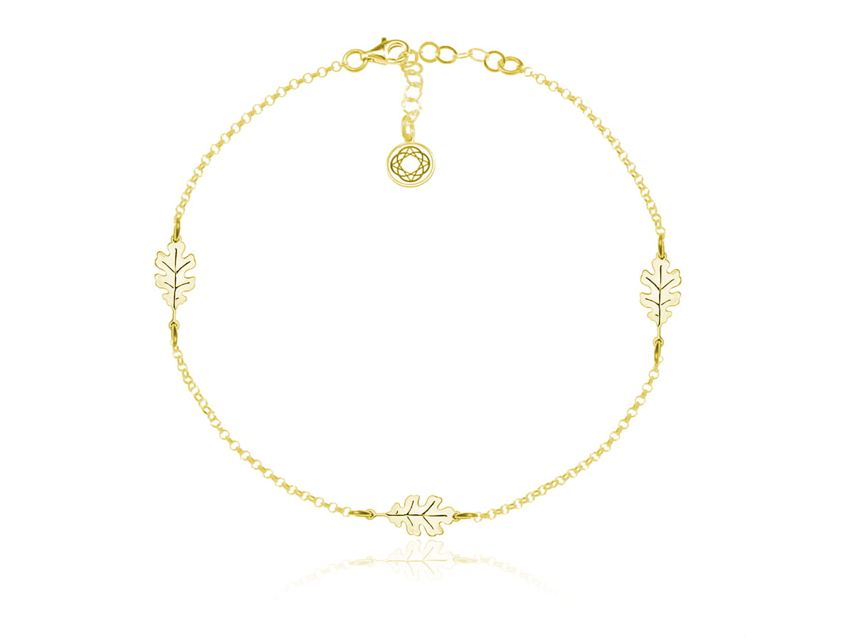 Delikatna bransoletka z motywem liści dębu wykonany ze srebra pr. 925 pokryta różowym złotem.
