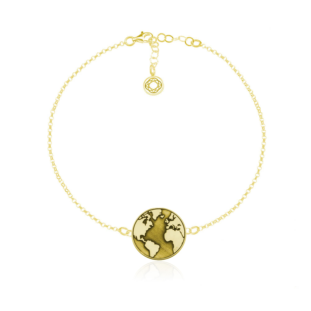 Bransoletka ze Srebra pr. 925 - Kula Ziemska i Grawer - 24k zlocenie