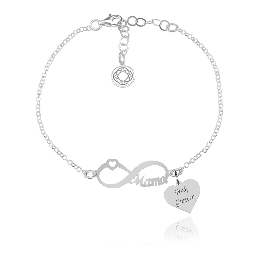 Bransoletka z motywem nieskończoności, słowem Mama i sercem do graweru
