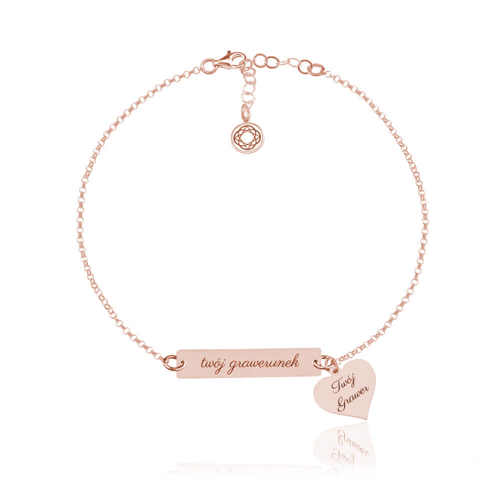 Bransoletka ze Srebra pr. 925 - Serce i Grawer - rose gold