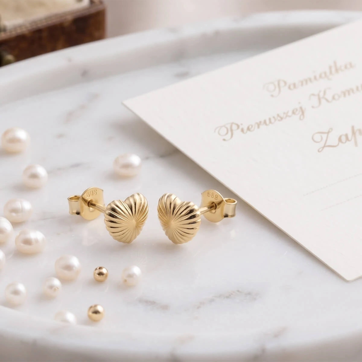 Delikatne Złote Kolczyki Serduszka 585 – Prezent na Komunię / Chrzest