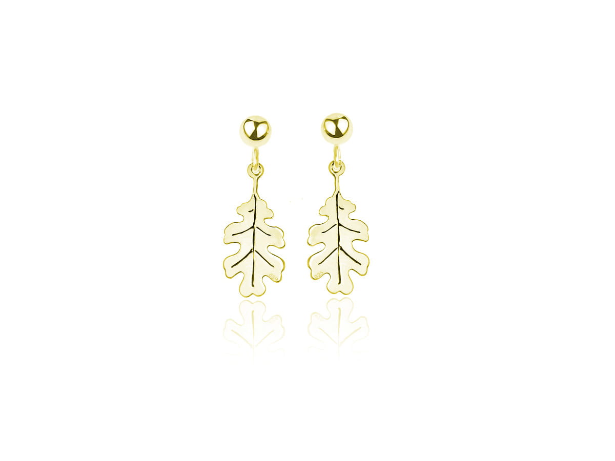 Delikatne kolczyki z motywem liścia dębu wykonane ze srebra pr. 925 pokrytego 24k złotem