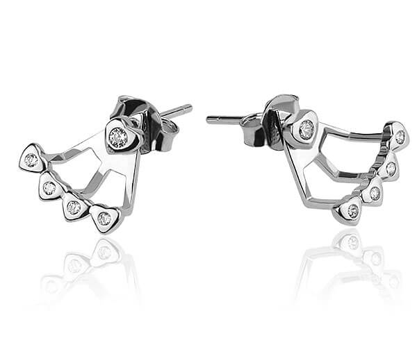 Wykonane w całości z rodowanego srebra pr. 925. Zdobione białymi cyrkoniami. Wymiary - ok. 1,2 x 1,1 cm.