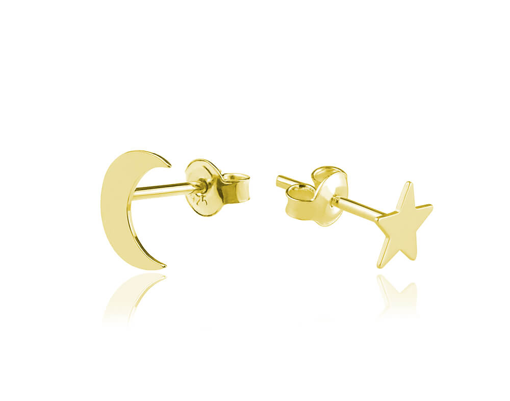 Kolczyki srebrne Księżyc i gwiazdka - 24k złocenie