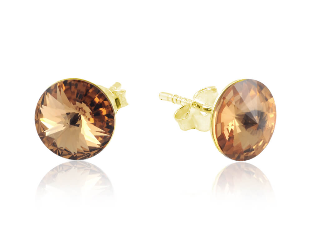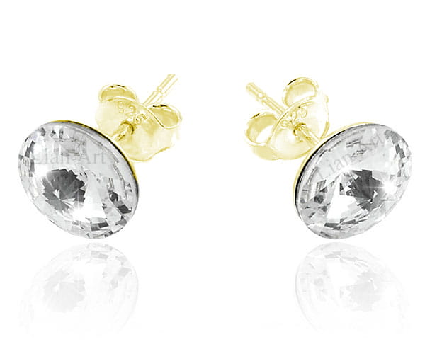 Kolczyki srebrne z kryształkiem Swarovski® 8mm Rivoli - 24k złocenie