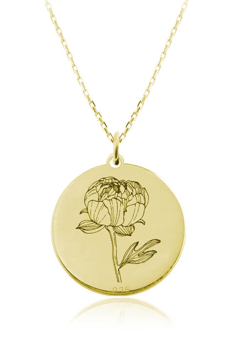 Kwiaty Polskie - Naszyjnik z Peonią - 24k złocenie - Grawer