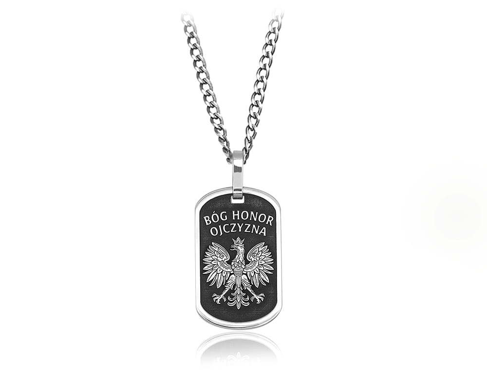 Srebrny nieśmiertelnik męski na łańcuchu z motywem Bóg Honor Ojczyzna