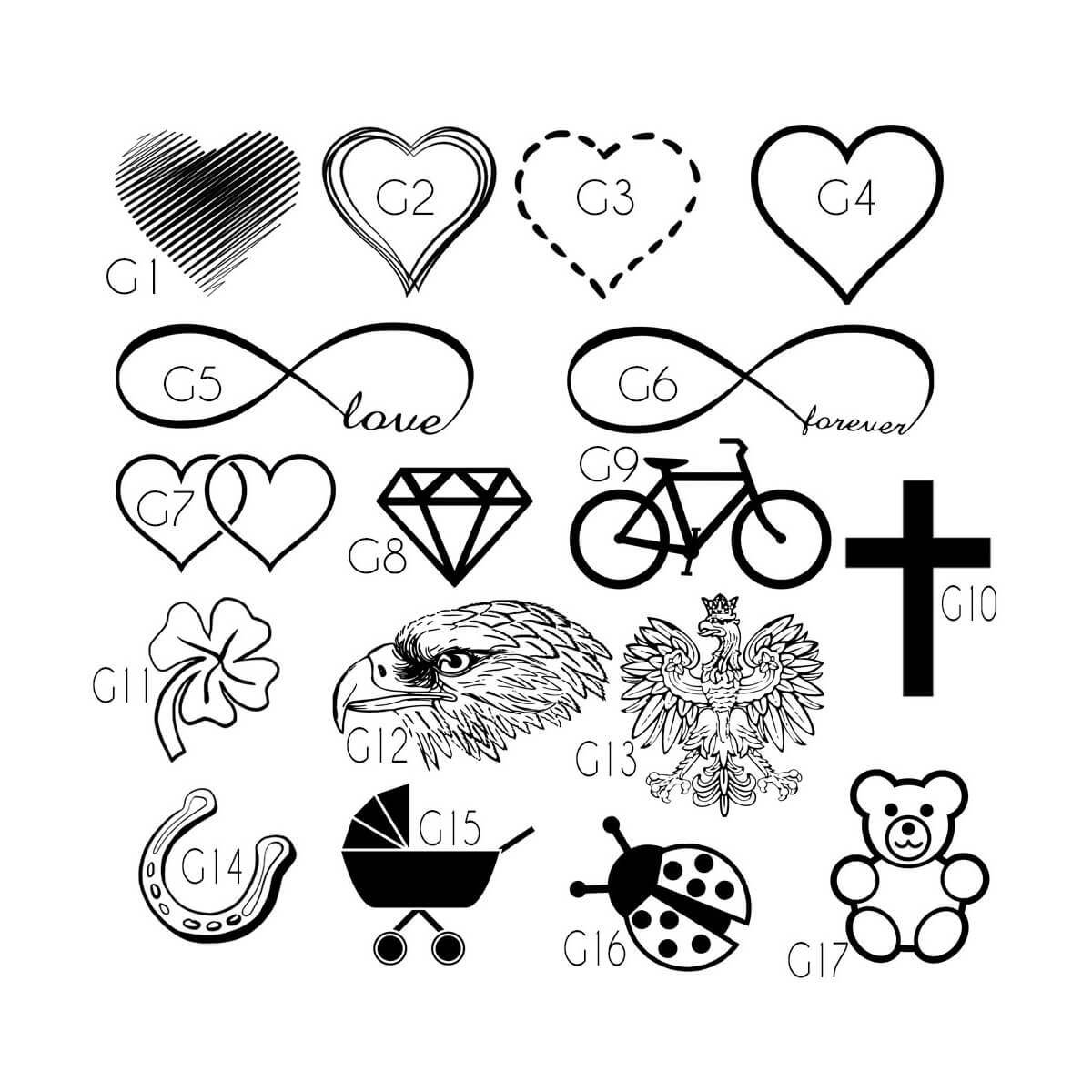 - możliwość wygrawerowania grafiki - do wyboru z tabelki z naszymi grafikami, jej symbol należy podać wraz z treścią graweru w oknie "treść"