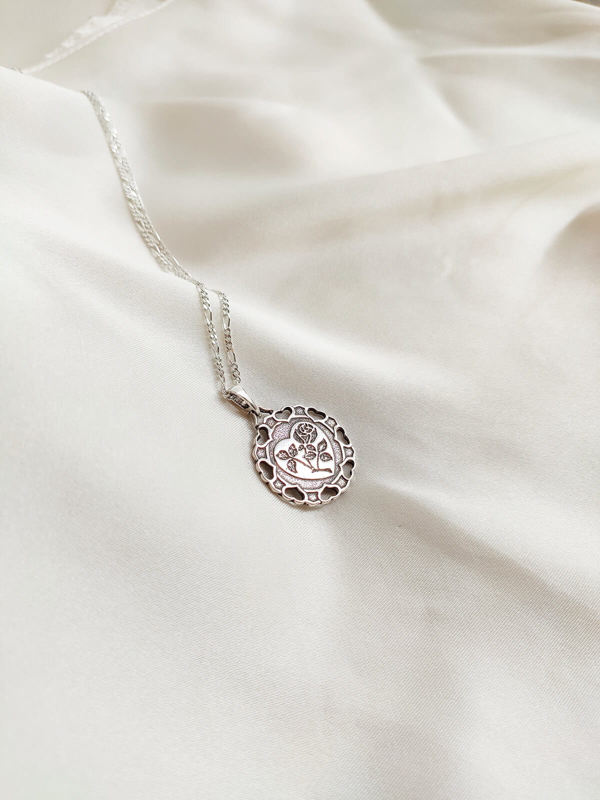 Przedstawiamy niezykle elegancki i kobiecy naszyjnik z motywem róży. Motyw róży to symbol miłości, namiętności i pożądania. W wielu kulturach róża uważana była za kwiat wręcz boski i magiczny. jako podarunek zawiera w sobie przesłanie miłości i piękna.