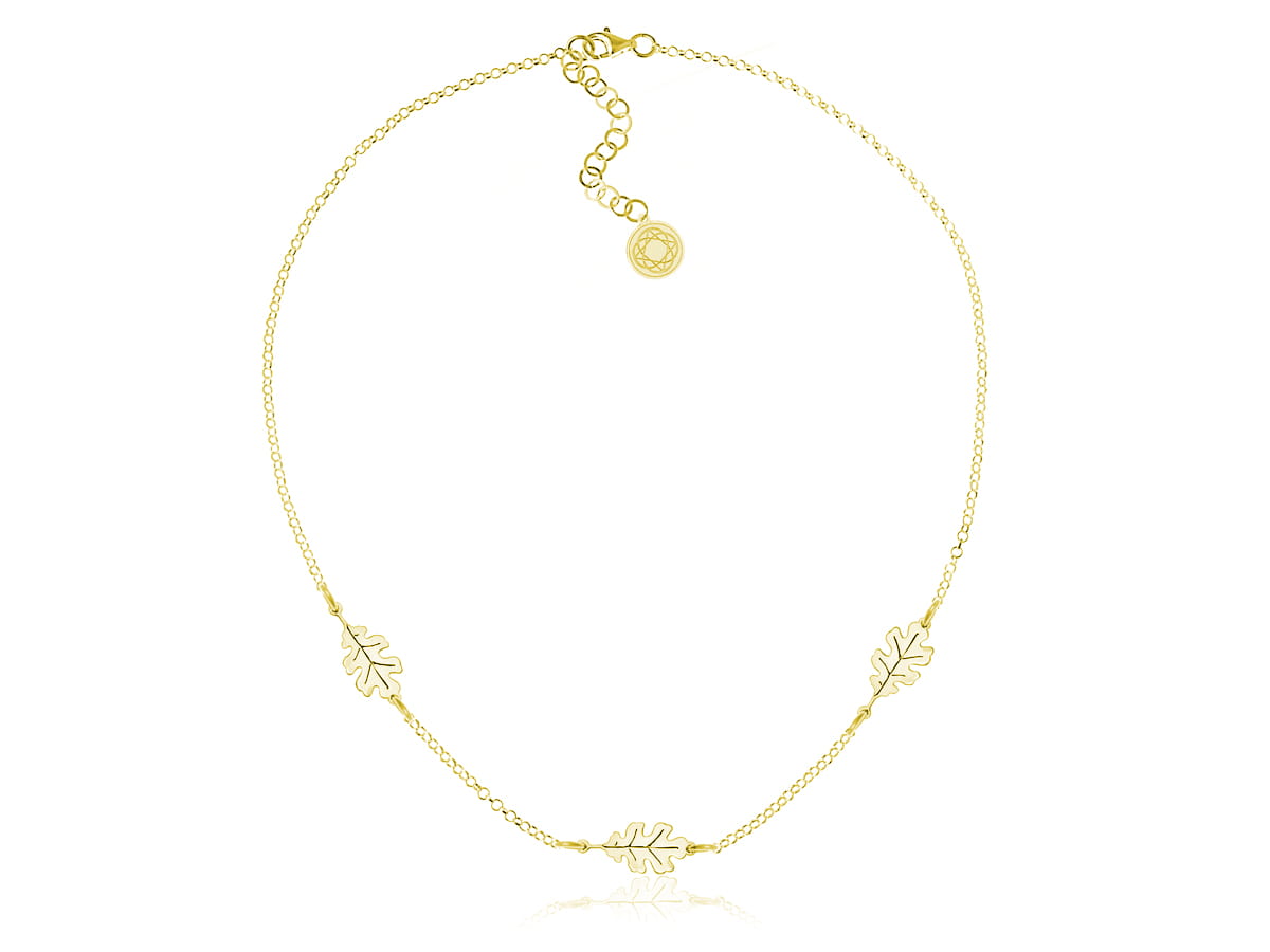Delikatny naszyjnik z motywem liści dębu wykonany ze srebra pr. 925 pokryty 24k złotem