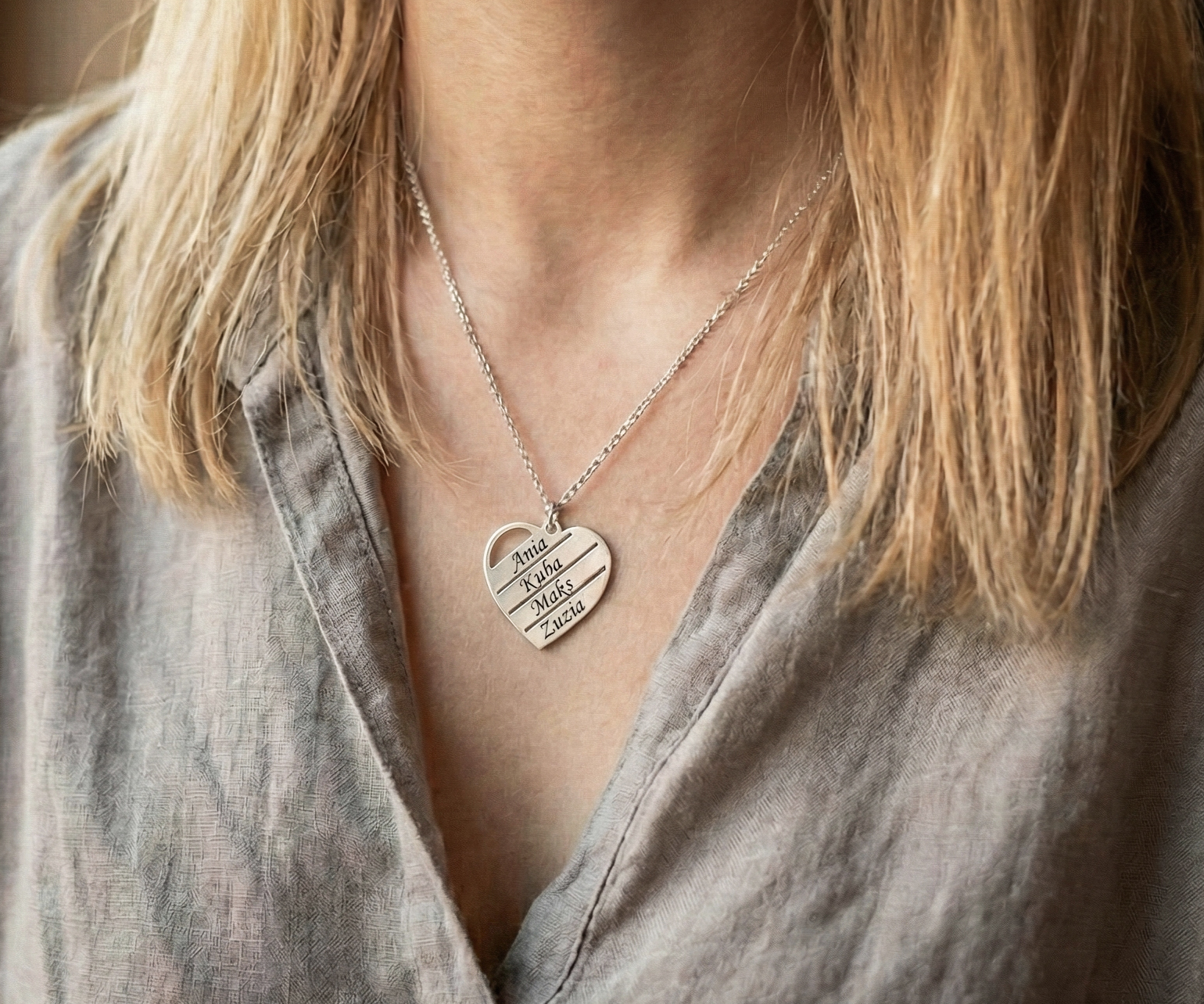 Delikatny naszyjnik z sercem i imionami - dla mamy, dla babci, dla dziewczyny, dla żony
