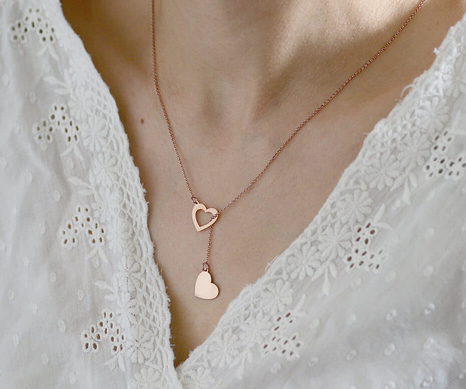 Naszyjnik Suzelle - przekładany Dwa Serca - rose gold - Grawer