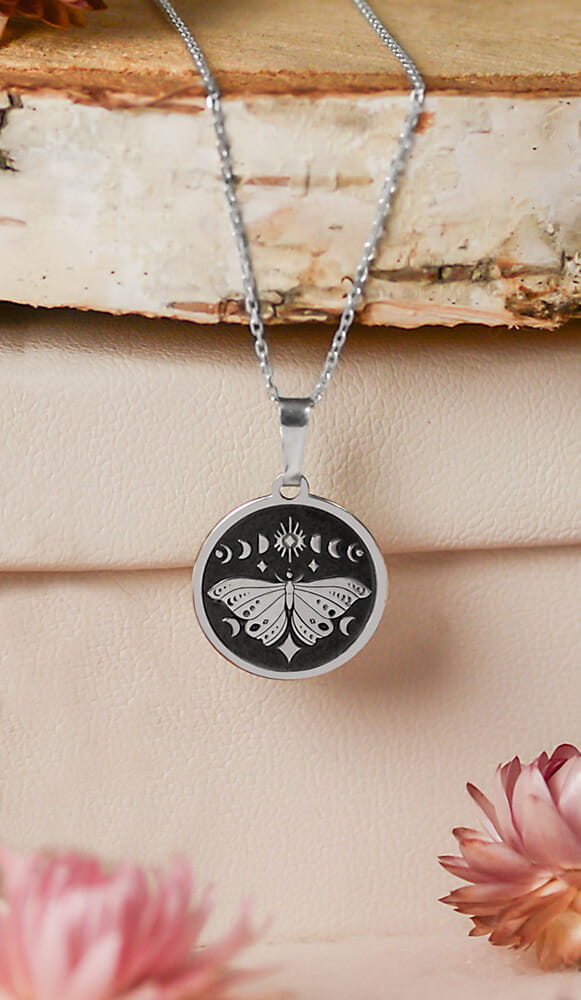 - Moc symboliki: Nosząc nasz naszyjnik, możesz poczuć się połączony/a z duchową energią ćmy, która przynosi przemianę i mądrość.