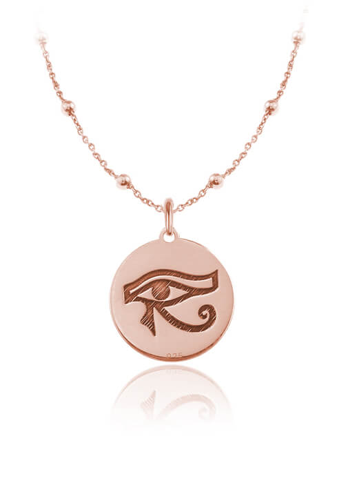 Naszyjnik srebrny Oko Horusa - łańcuszek kulki - Grawer - rose gold