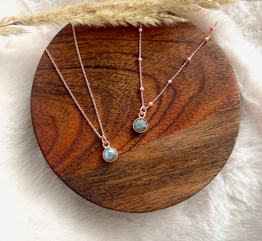 Naszyjnik z naturalnym Labradorytem - okrągły - rose gold