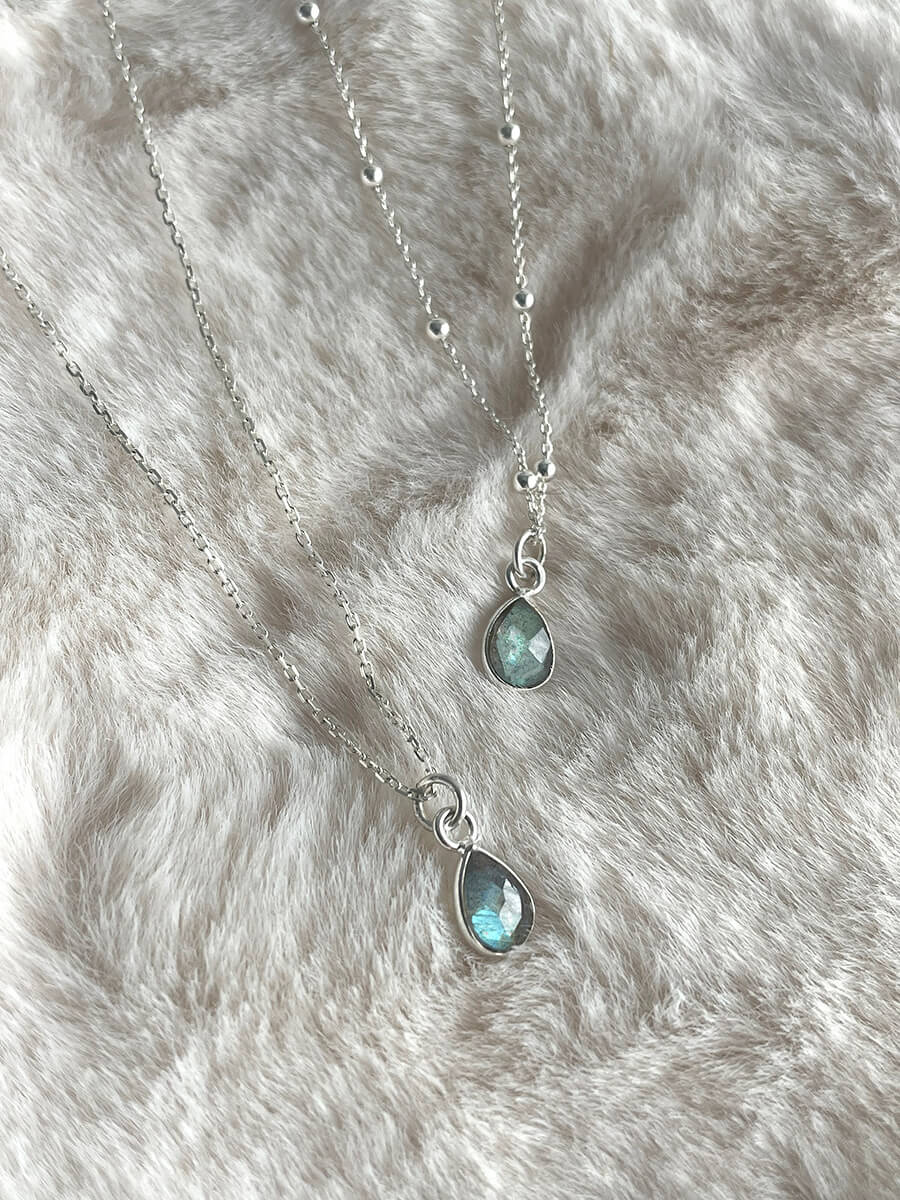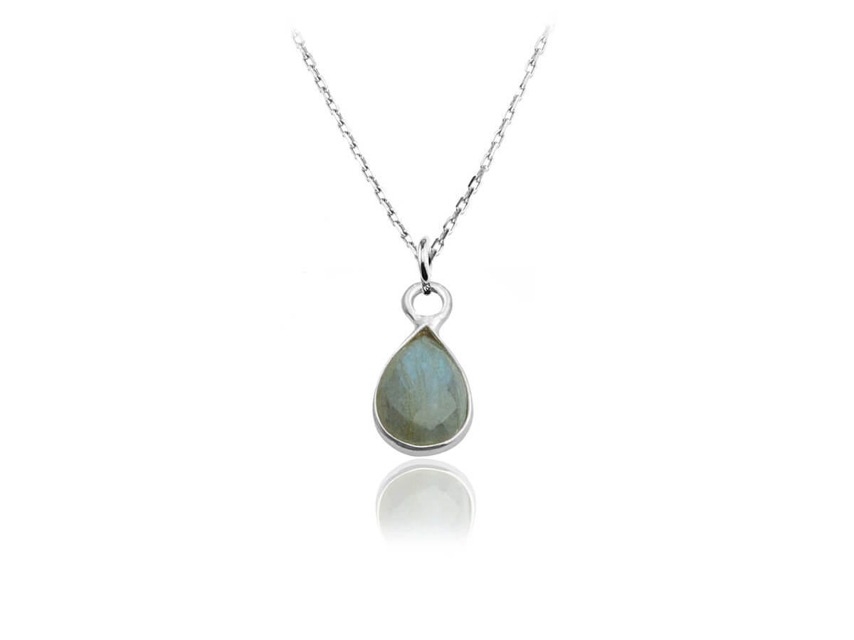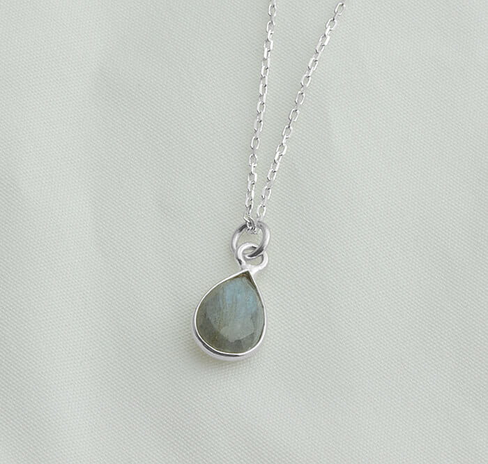 Biżuteria wykonana jest ze srebra pr. 925. Wewnątrz wprawiony naturalny kamień - Labradoryt.