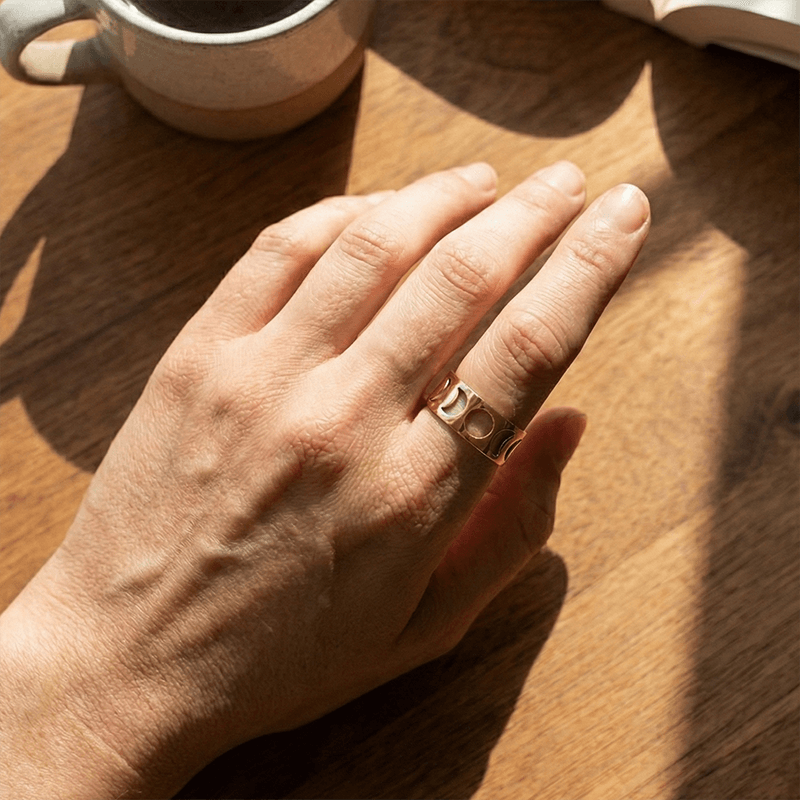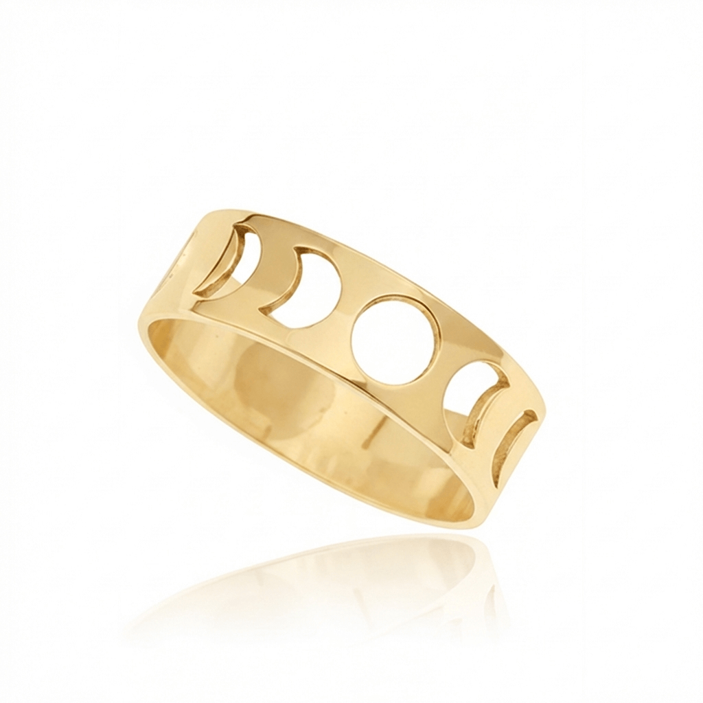Obrączka srebrna Luna - fazy Księżyca - 24k złocenie