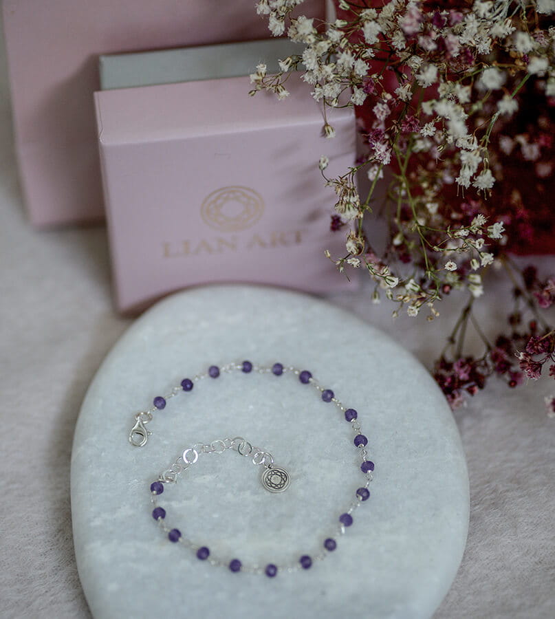Całość wykonana ze srebra pr. 925 z dodatkiem naturalnych ametystów.