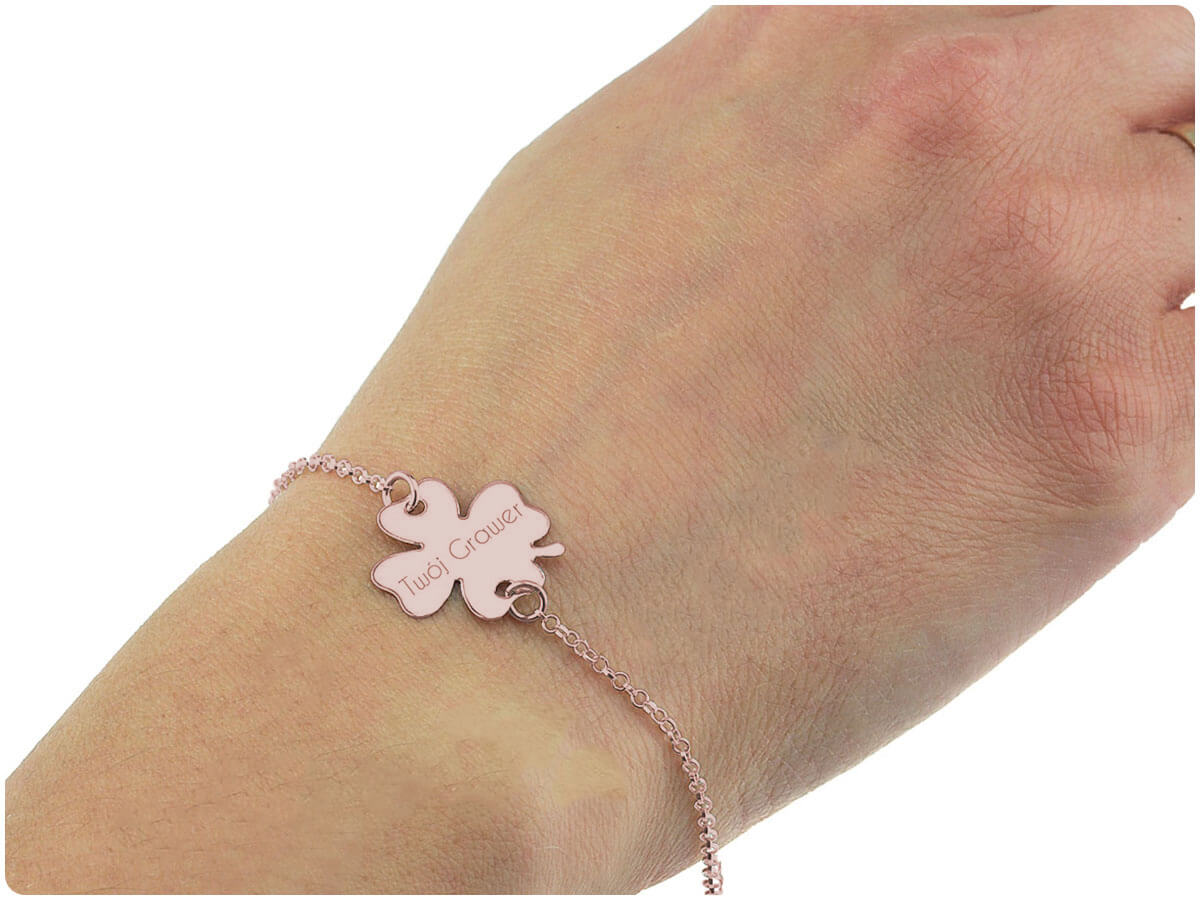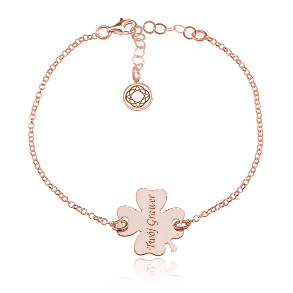 Srebrna bransoletka Koniczynka - Grawer - rose gold