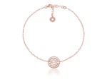 Bransoletka wykonana jest ze srebra pr. 925 dodatkowo uszlachetnionego różowym złotem. Długość minimalna bransoletki to ok. 17 cm - maksymalna: ok. 19 cm. Średnica zawieszki to ok. 1,4 cm.