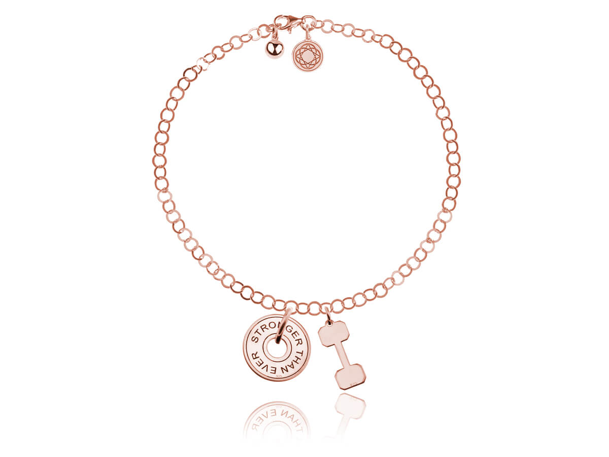 Srebrna bransoletka Move z ciężarkiem i hantlem - Rose Gold