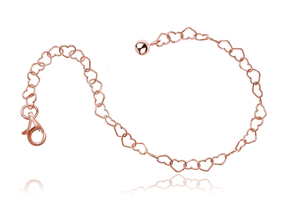 Ciekawy splot z ogniwek w kszałcie serduszek czyni tą bransoletkę zarazem figlarną jak i elegancką.