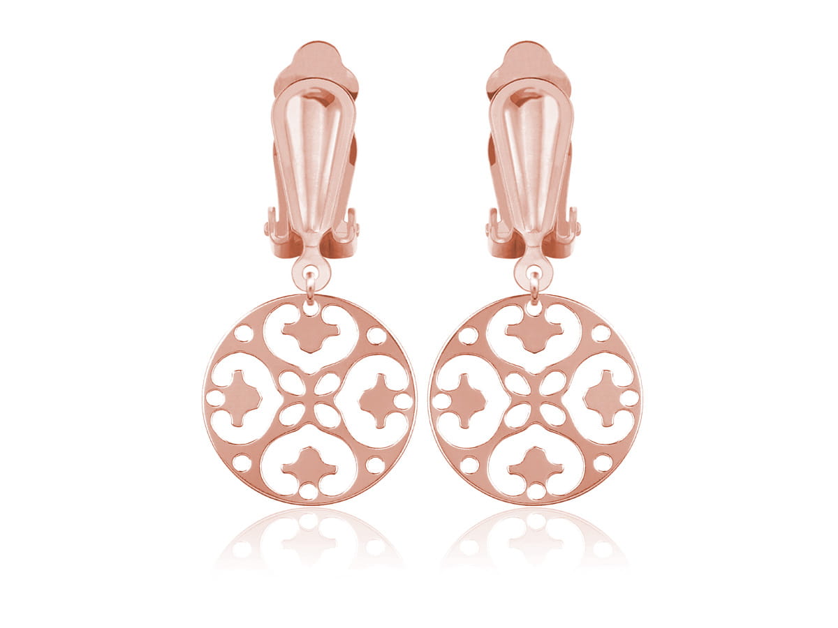 Srebrne klipsy Jaśmina z rozetą - rose gold