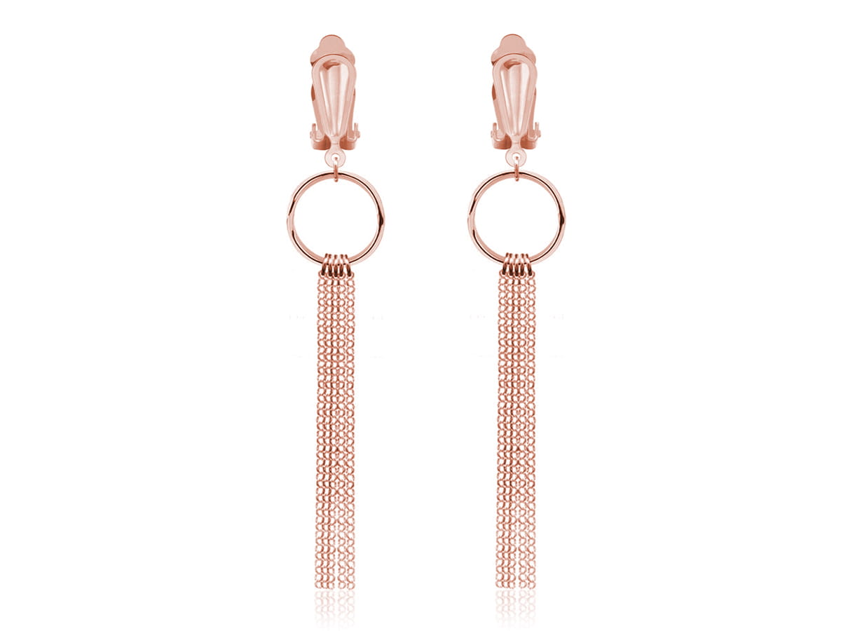 Srebrne klipsy Regina z łańcuszkami - rose gold