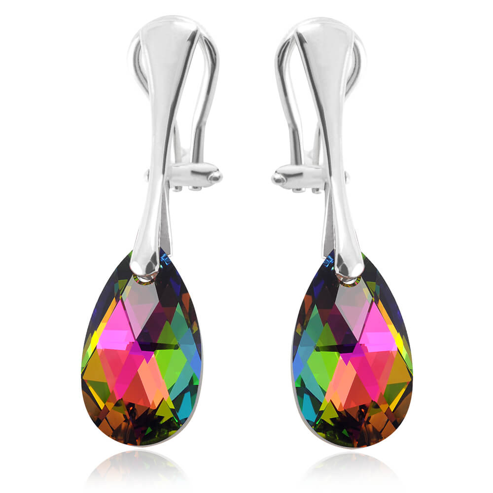 Daj się oczarować wyjątkowemu urokowi naszych srebrnych klipsów ze srebra próby 925 z kryształem Swarovski o kolorze Vitrail Medium. Dodaj niepowtarzalny akcent do swojego wyglądu i błyszcz z wyjątkową klasyką.