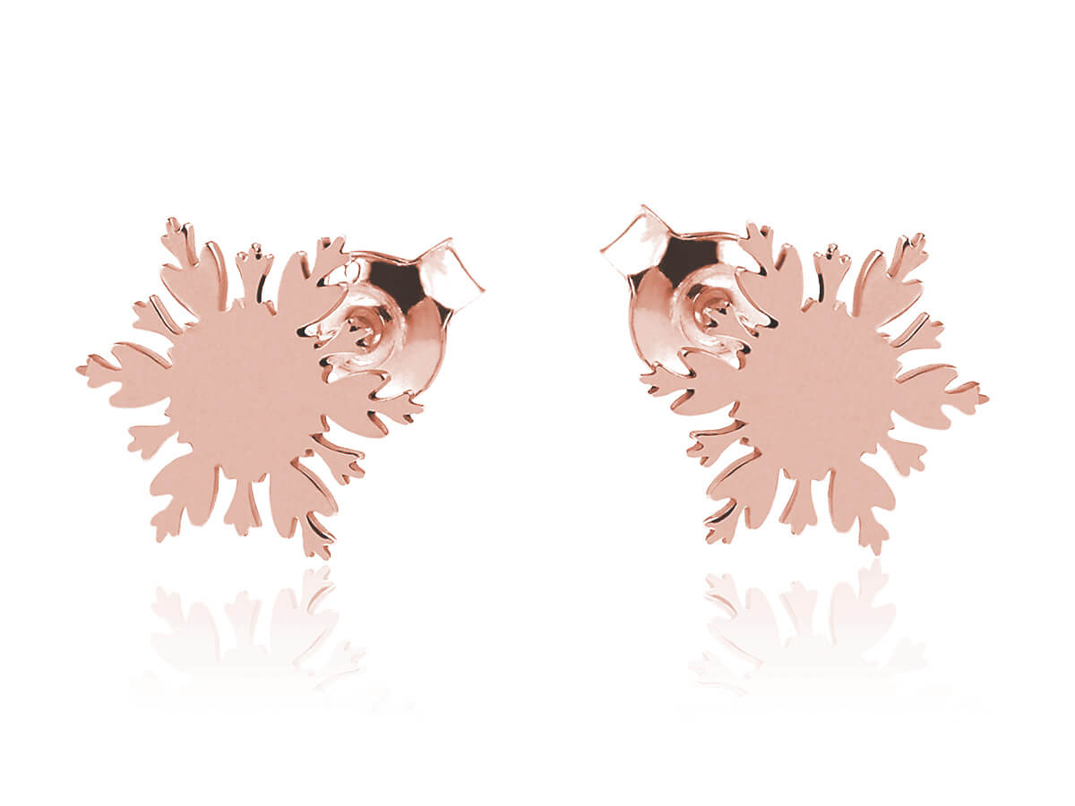 Srebrne kolczyki - Śnieżynka - Rose Gold - sztyft