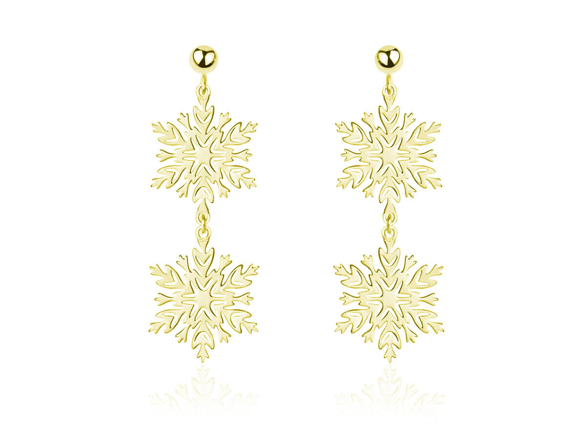 Srebrne kolczyki płatki śniegu w 24k złoceniu