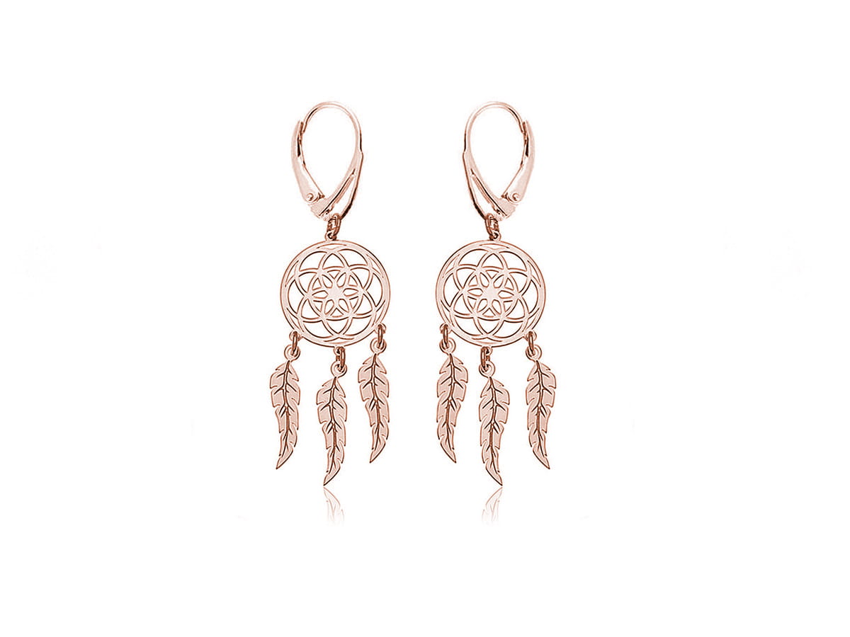 Srebrne kolczyki łapacze snów dreamcatcher - Rose Gold