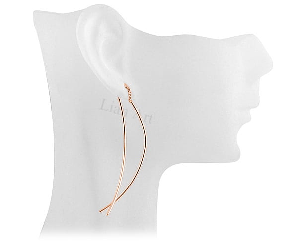 Srebrne kolczyki przeciągane przez ucho - rose gold