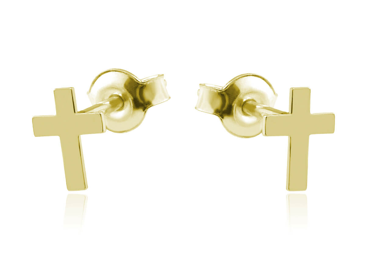Srebrne kolczyki z krzyżykiem - 24k złocenie