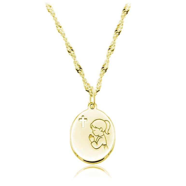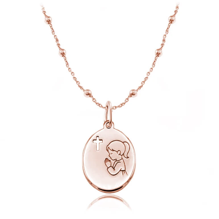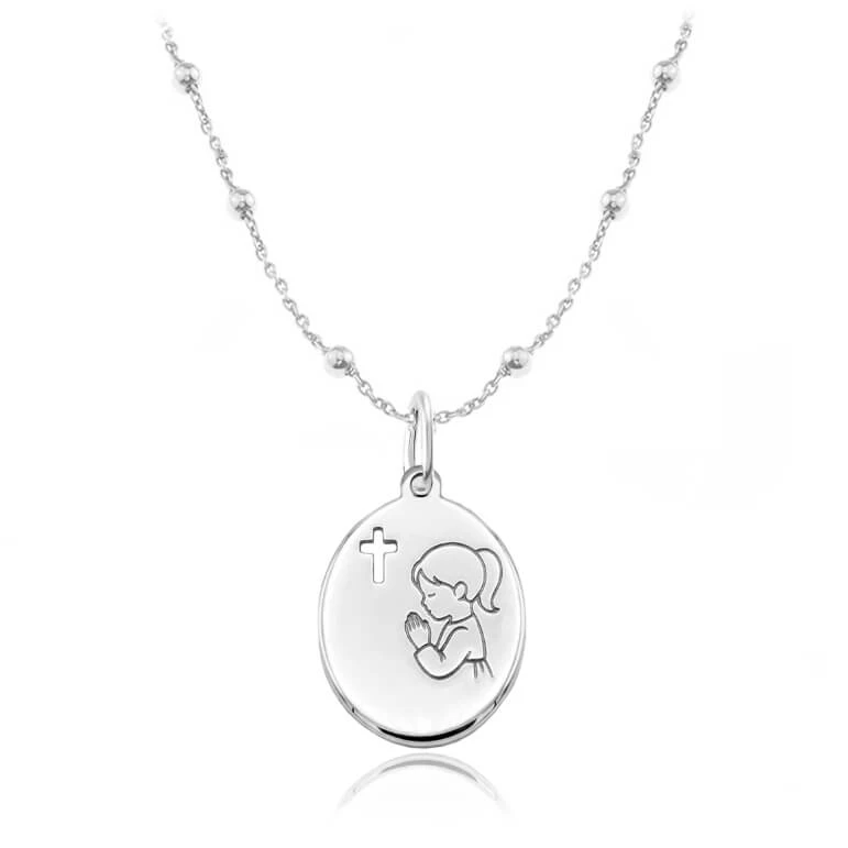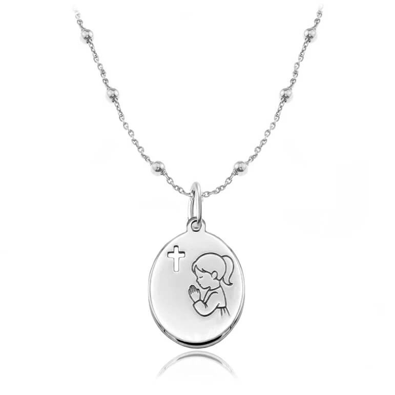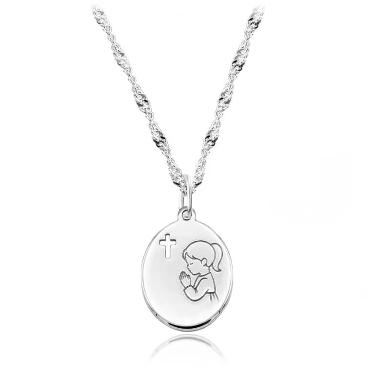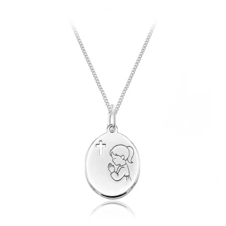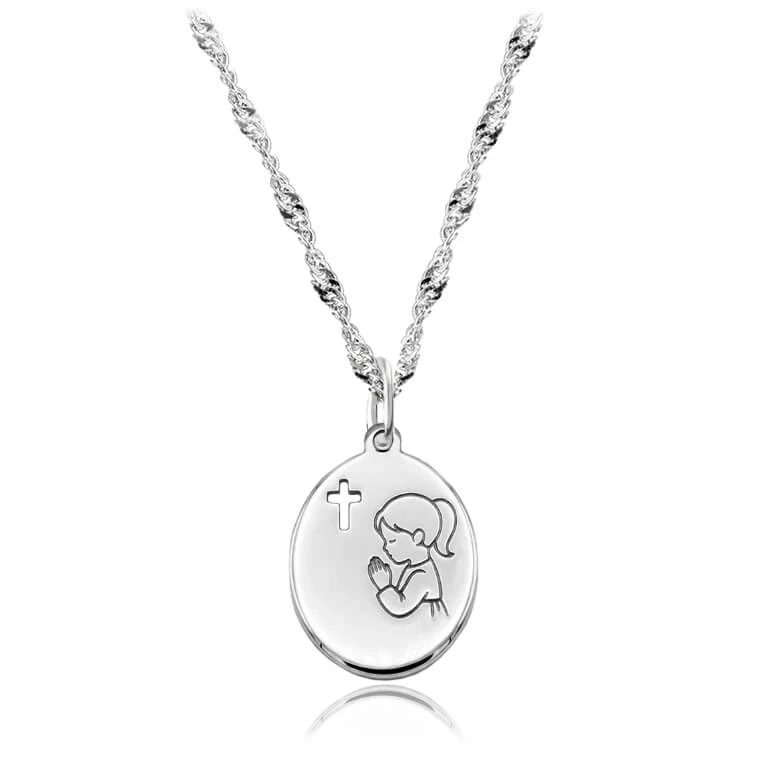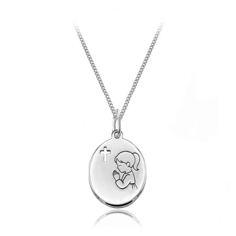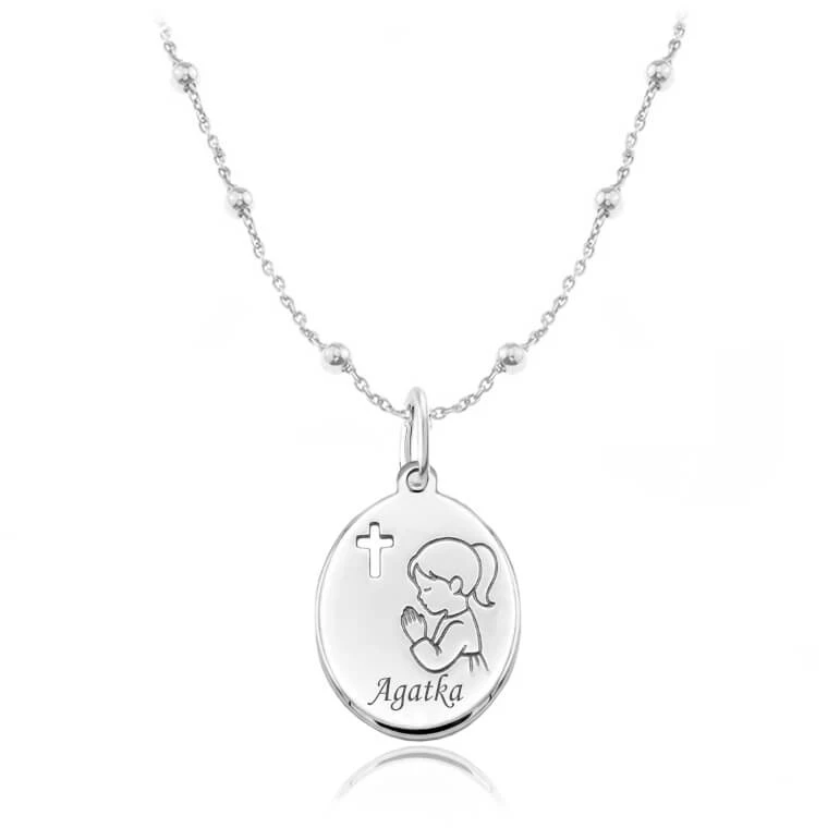 Srebrny Naszyjnik "Modląca się Dziewczynka" – Wyjątkowa Pamiątka z Grawerem