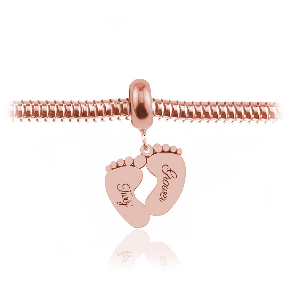 Srebrny charms Beads - zawieszka Stópki - rose gold - grawer gratis!
