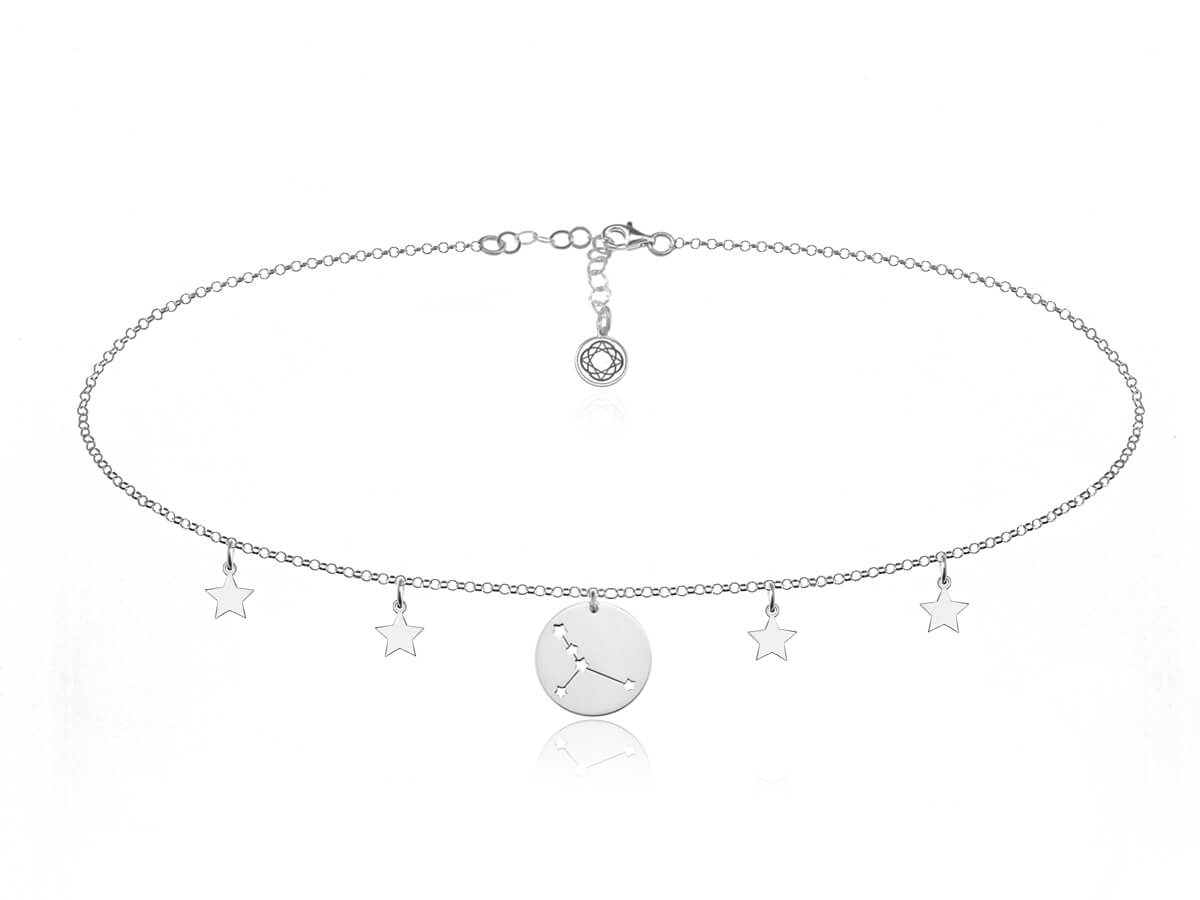 Srebrny choker z zawieszką znaki zodiaku i gwiazdkami