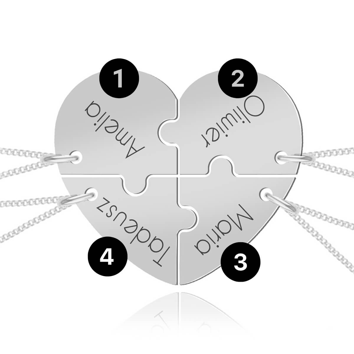 Srebrny komplet naszyjnikow Serce Puzzle - 4 części - Grawer