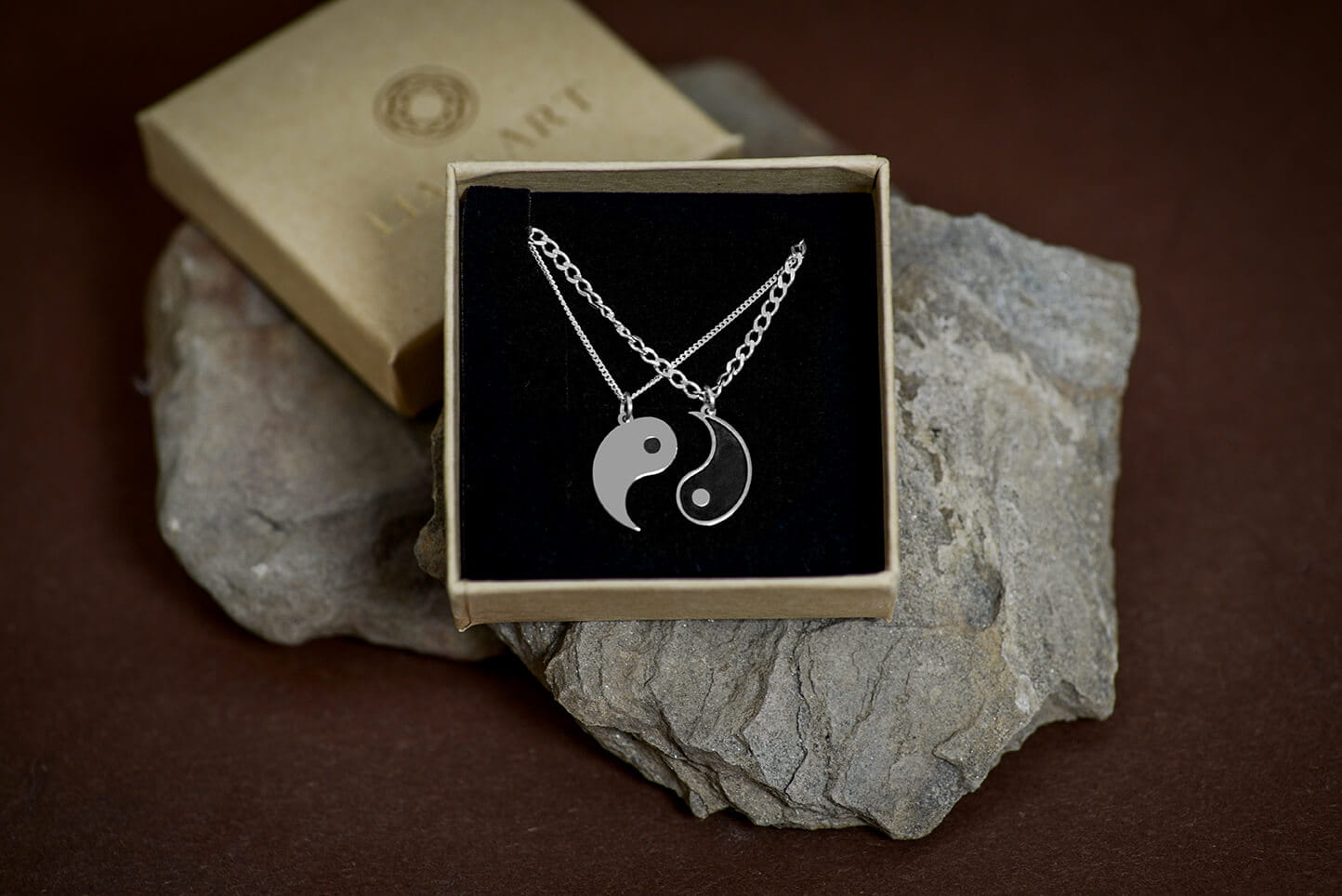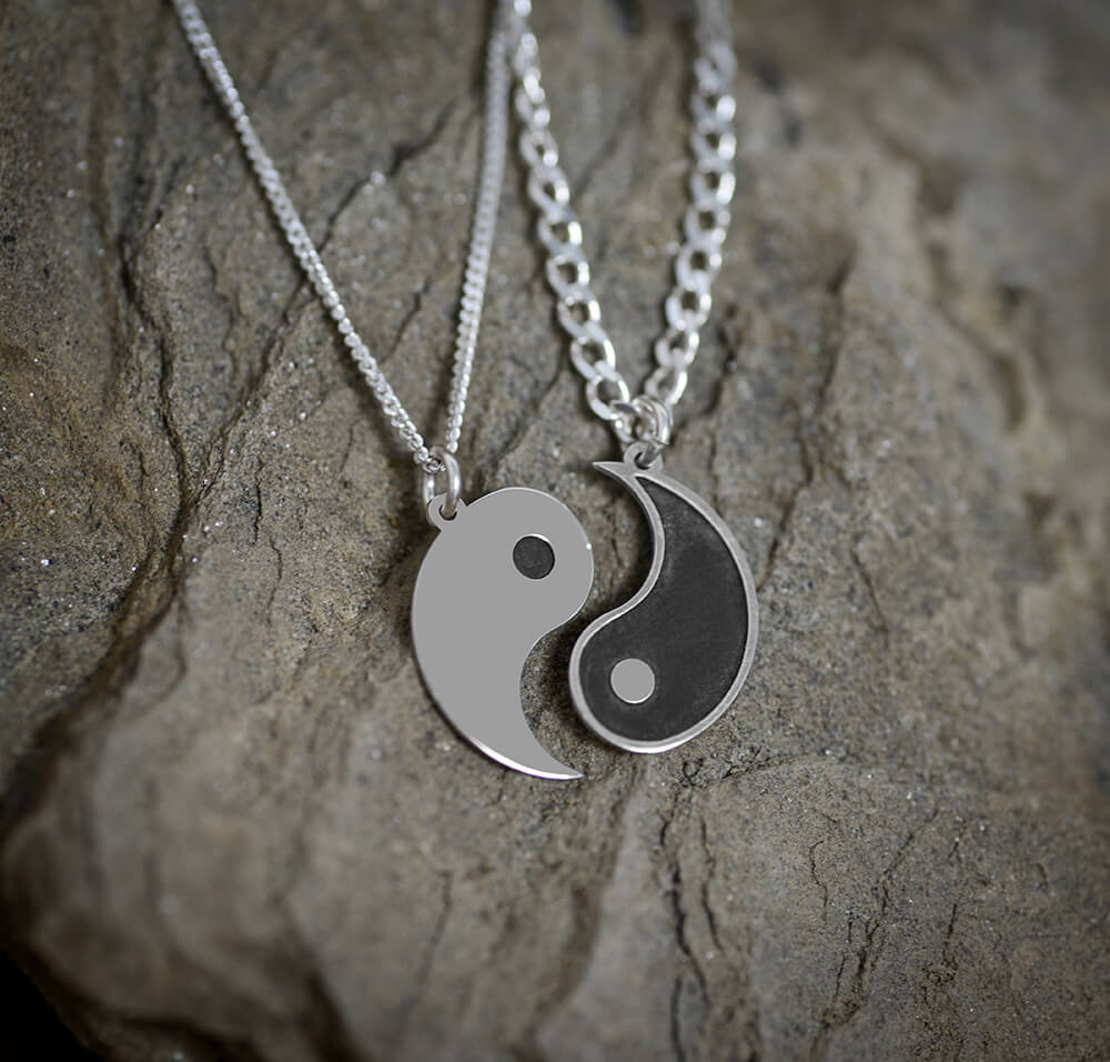 Srebrny komplet naszyjnikow Yin Yang - dla Pary - Grawer