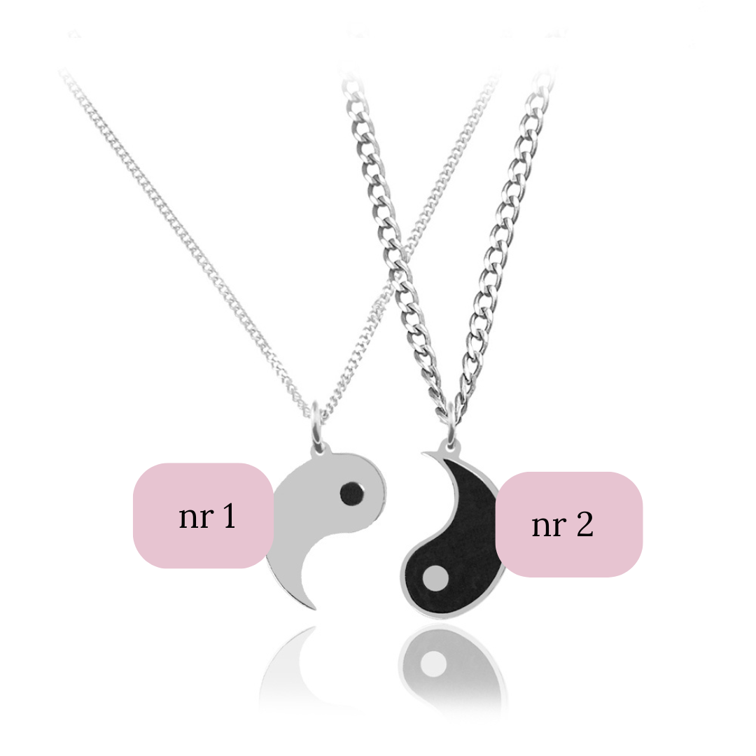 Zestaw dwa naszyjniki z motywem yin yang ideqalnie do siebie pasujących