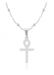 Srebrny krzyż Ankh II naszyjnik na łańcuszku kulki