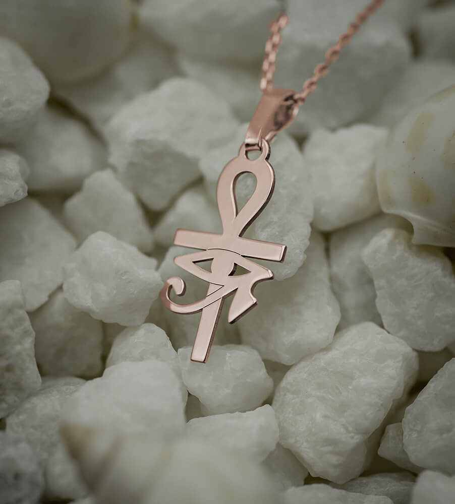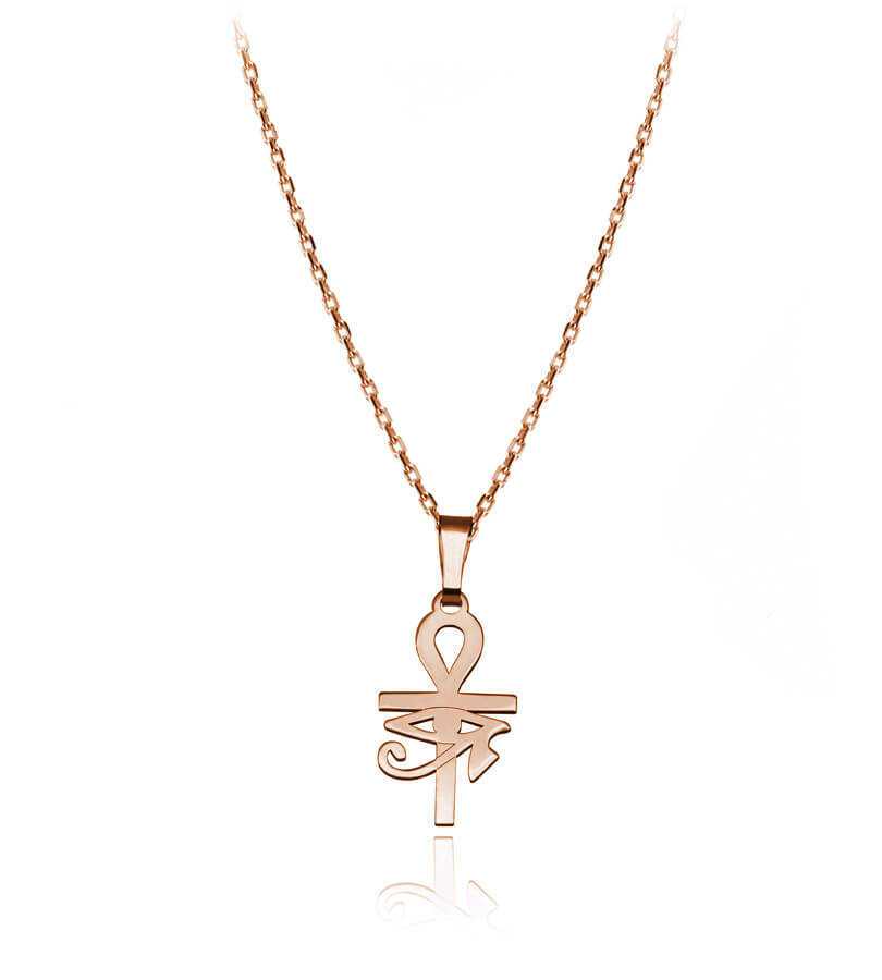 Srebrny krzyż Ankh Oko Horusa naszyjnik na łańcuszku Rose Gold