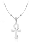 Srebrny krzyż Ankh naszyjnik na łańcuszku kulki