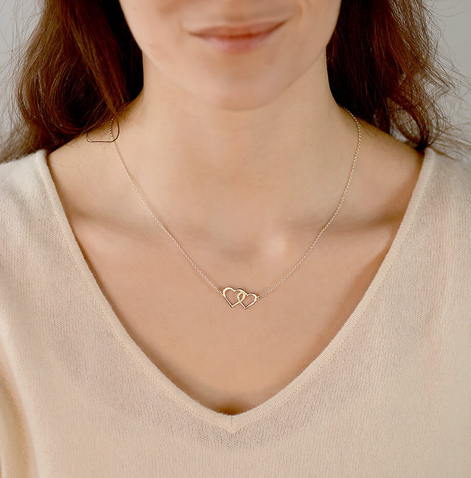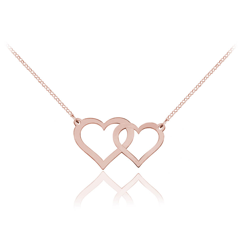 Wykonany ze srebra pr. 925 pokryty różowym złotem. Długości do wyboru. Wielkość serduszek - ok. 2,0 x 1,3 cm