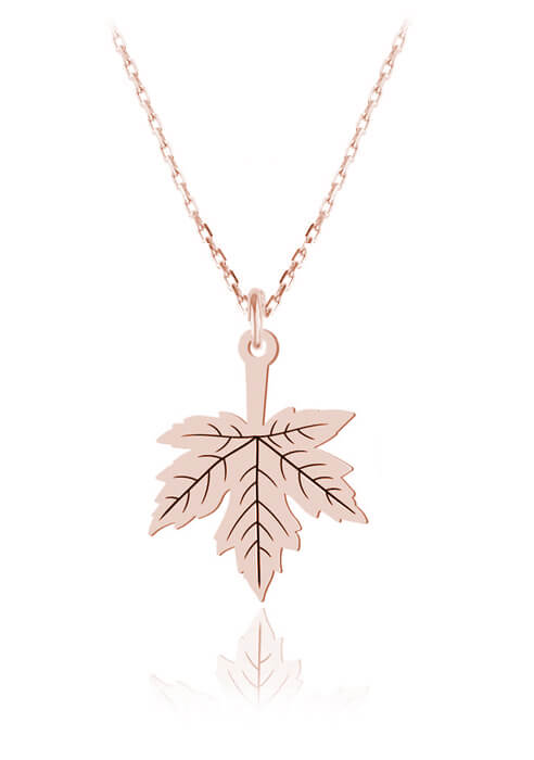 Srebrny naszyjnik - Maple - Liść Klonu - Grawer - rose gold