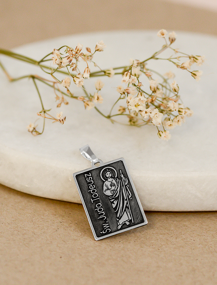 Srebrny naszyjnik z wizerunkiem Judy Tadeusza