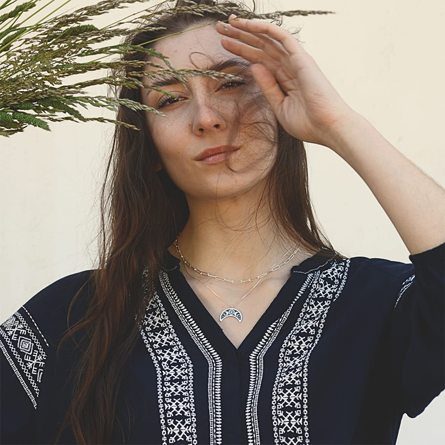 Naszyjnik z motywem księżyca z fazami, zaprojektowany i wykonany w naszej pracowni.